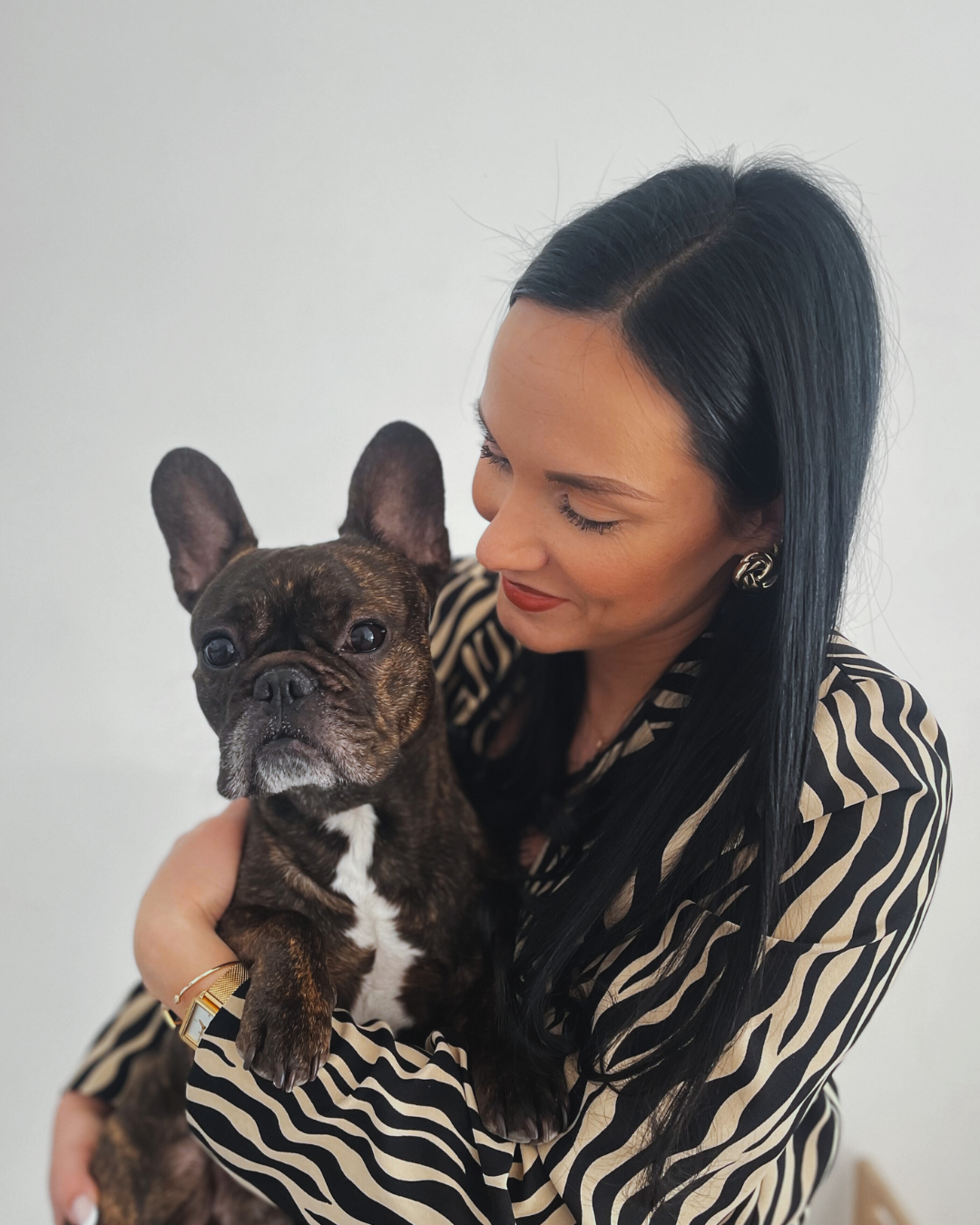 À mes côtés, mon fidèle compagnon Priam, un chien au regard curieux et à la présence apaisante. Il m’accompagne au quotidien et incarne des valeurs essentielles à mon travail : la fidélité, la bienveillance et l’authenticité.